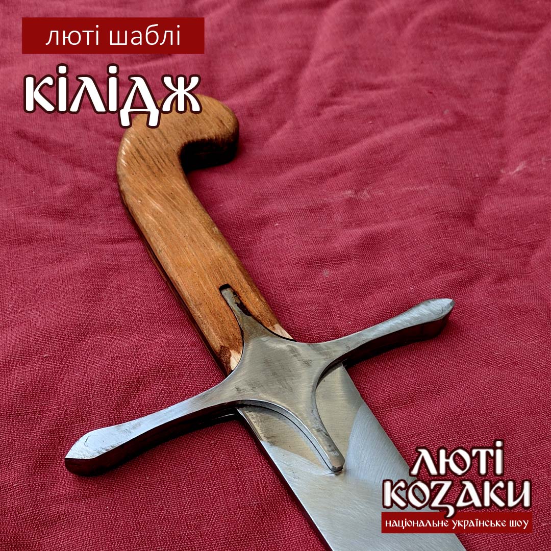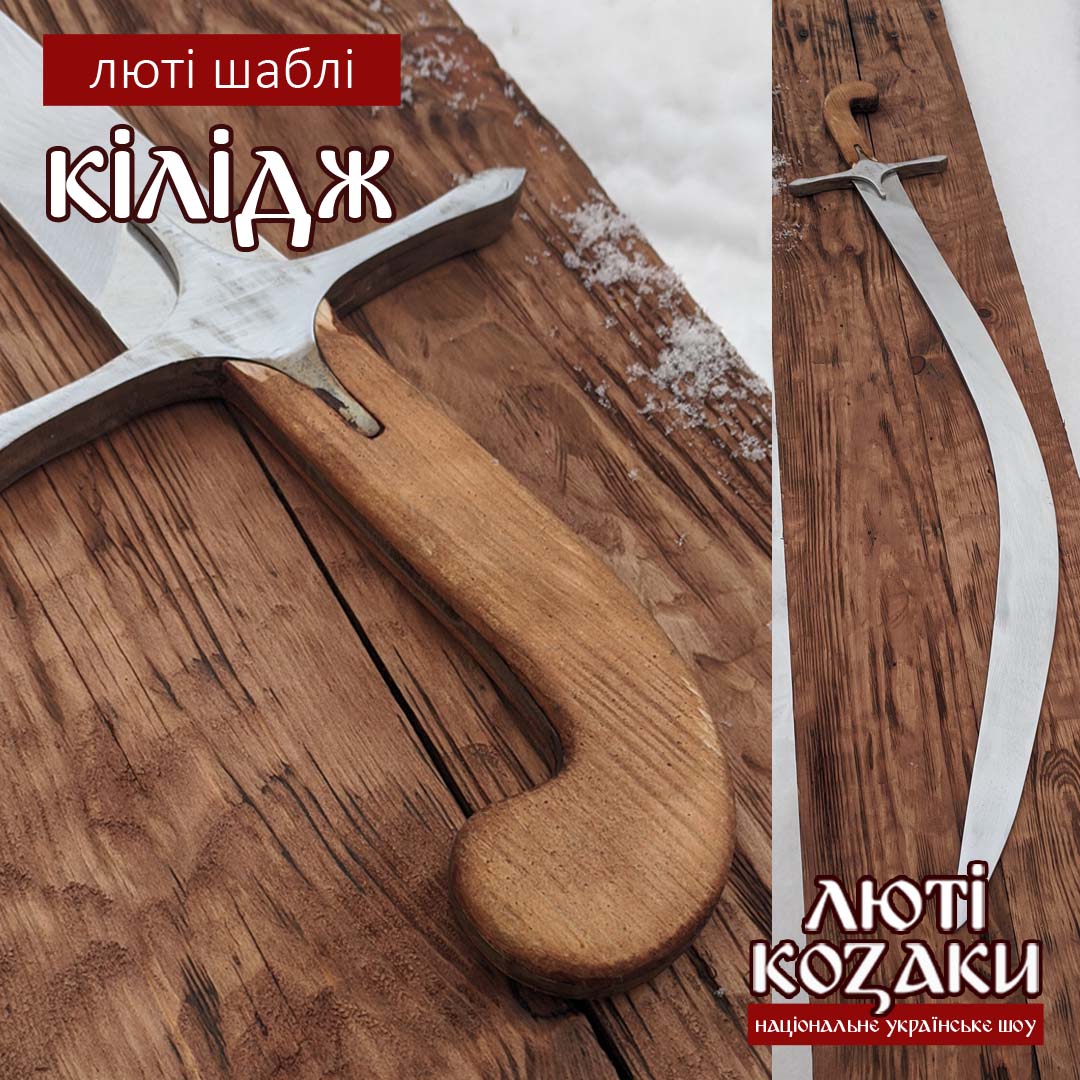 Шабля турецького типу - кілідж. XVIII ст., Туреччина. Клинок сталевий, значної кривизни, з великою дволезовою єлманью. Обух широкий, розложистий, Т-подібної форми в перерізі. Бойовий кінець дволезовий. Ефес відкритого типу. Гарда проста, хрестоподібна. Видовжені кільйони мають мигдалеподібні витягнуті закінчення. Перехрестя становить єдину конструкцію з хрестовиною, шипи видовжені тонкі. Щічки руків’я дерев’яні. Верхів’я характерне для кіліджа, комоподібне.